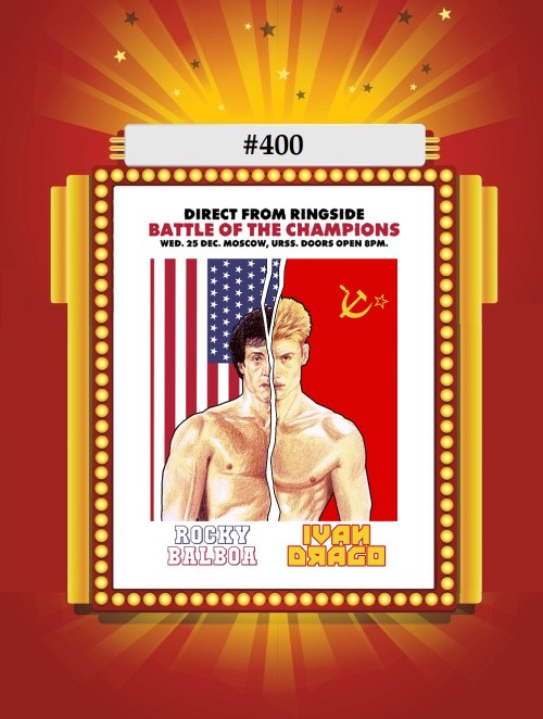 Welcome to the Set of 400! Glad you could make it! And what better way to kick off this epic countdown than with the most unrealistic rock-’em-sock-’em boxing picture ever made! Rocky Balboa at this point was more superhero than Philly meat puncher, and the Russians were still our sworn enemies, unlike today, where they get to vote in our elections! It’s a ridiculously over-the-top movie, but does feature by far the best boxing ring attire/entrance ever caught on film: