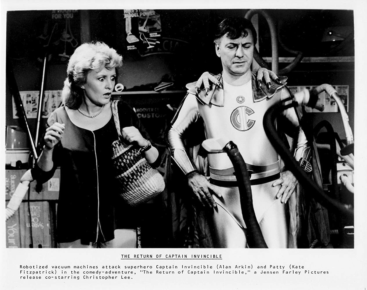 The quality of the film is a subject of some debate. While I think they were purposely making a kinda trashy, cheap superhero parody, thus achieving wild success all around, many just disregard this whole thing as a mess. This, despite featuring songs from Rocky Horror Picture Show tunesmith Richard O’Brien and a script from Die Hard/Running Man scribe Steven E. de Souza. They had to plan it to turn out this way, right? Is there any other explanation for a scene where the Captain and his cop sidekick Patty battle a room full of vacuum cleaners? Or for a song, sung by the President of the United States, featuring only the word “bullshit” repeated dozen of times? The filmmakers didn’t just trip over themselves and accidentally arrive at The Return of Captain Invincible – did they?