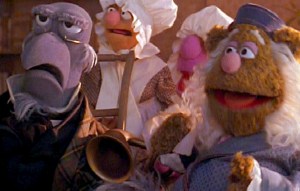 Some critics and fans choice as the best Muppet film, Christmas Carol holds a number of interesting distinctions, not just in Henson Company lore but also in filmed versions of the Dickens novel. Come along on this trivia journey! Much has been made of the fact that this was the first major Muppet production after Jim Henson’s death in 1990, but this was also the first project without Richard Hunt – another of the core five puppeteers who performed virtually all the characters – who was ailing and died in early ’92. Because of this, many of their characters do not appear or have significantly scaled down roles, such as Rowlf, Scooter, Janice, and Dr. Teeth. It would be many years before they would recast these parts. The exceptions, of course, were Steve Whitmire taking over Kermit – an obviously necessity – and Dave Goelz and Jerry Nelson playing Statler & Waldorf (here, the Marley brothers), having been performed by Hunt (since The Muppet Show) and Henson (since The Muppet Show pilot, Sex and Violence). Partly by design, but also by casting, this was the first Muppet project of any substantial size that did not feature Kermit as the lead – you can make a case to say he’s fourth as Cratchit, after Caine’s Scrooge, Gonzo as Dickens, and Rizzo, helping out the narration. This set-up, with Gonzo as the main Muppet figure, would carry through the rest of the films in the ’90s.