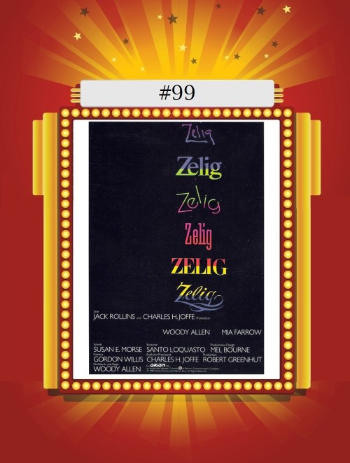 While it did receive some mild awards attention at the time – Cinematography and Costume Academy nominations, Best Comedy/Musical and Best Actor nods from the Globes – I don’t know how lasting an impact Zelig had, except as the obvious inspiration for sequences in Forrest Gump. But reviewers at the time were quite effusive, and for what it’s worth the movie still holds a 100% from Rotten Tomatoes, even if older movies have an easier time making that mark than newer films with the hundreds of reviews compiled. It’s a fascinating curiosity, Zelig, as – as some reviewers have mentioned – it almost isn’t a movie. Leonard is a character, but is so constantly in flux that it’s hard to pin down who he is, or what he wants besides to fit in. Farrow is the next most significant figure in the movie, but is only concerned with helping Leonard, and so doesn’t emerge in any defined way either. The movie is at least in part about the comfort of conformity, and doesn’t necessarily reject that idea, which makes for a tricky message, but as a pure comedy it manages to work in spite of this. Woody’s films don’t tend to drown in themes, but they are usually propped up by very robust characters – this movie sort of operates with neither being very strong, almost throwing back to the days of his zanier films, even though this rarely dips into that wild comedic territory. It’s entertaining as a film, while also being a very interesting movie, if that makes sense.