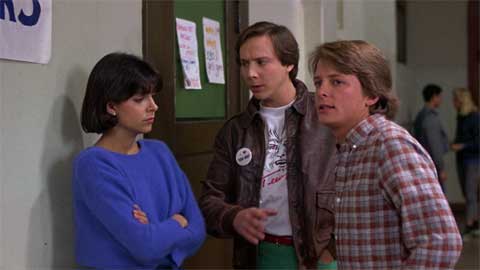 But even though I could talk about the film itself to egregious length, to the point of incorporating the nonsensical sequel and plotting a course for a Teen Wolf-iverse that Hollywood would be foolish to ignore (Get at me, studio heads!), I instead want to examine why I enjoy this shlocktastrophe as much as I do. Like many films of the era making this list, I watched Teen Wolf dozens of times as a kid. I saw it years before watching Back to the Future for the first time, and so more directly associated Michael J. Fox with Scott Howard than any other character (I didn’t watch a ton of Family Ties, either). The flashy, supernatural aspect to the plot is naturally intriguing, even just in a “How the hell are they going to sustain a movie with this?” manner, plus it has cool teenagers playing basketball and surfing the roof of their vans around town. That’s all kid appealing, right?