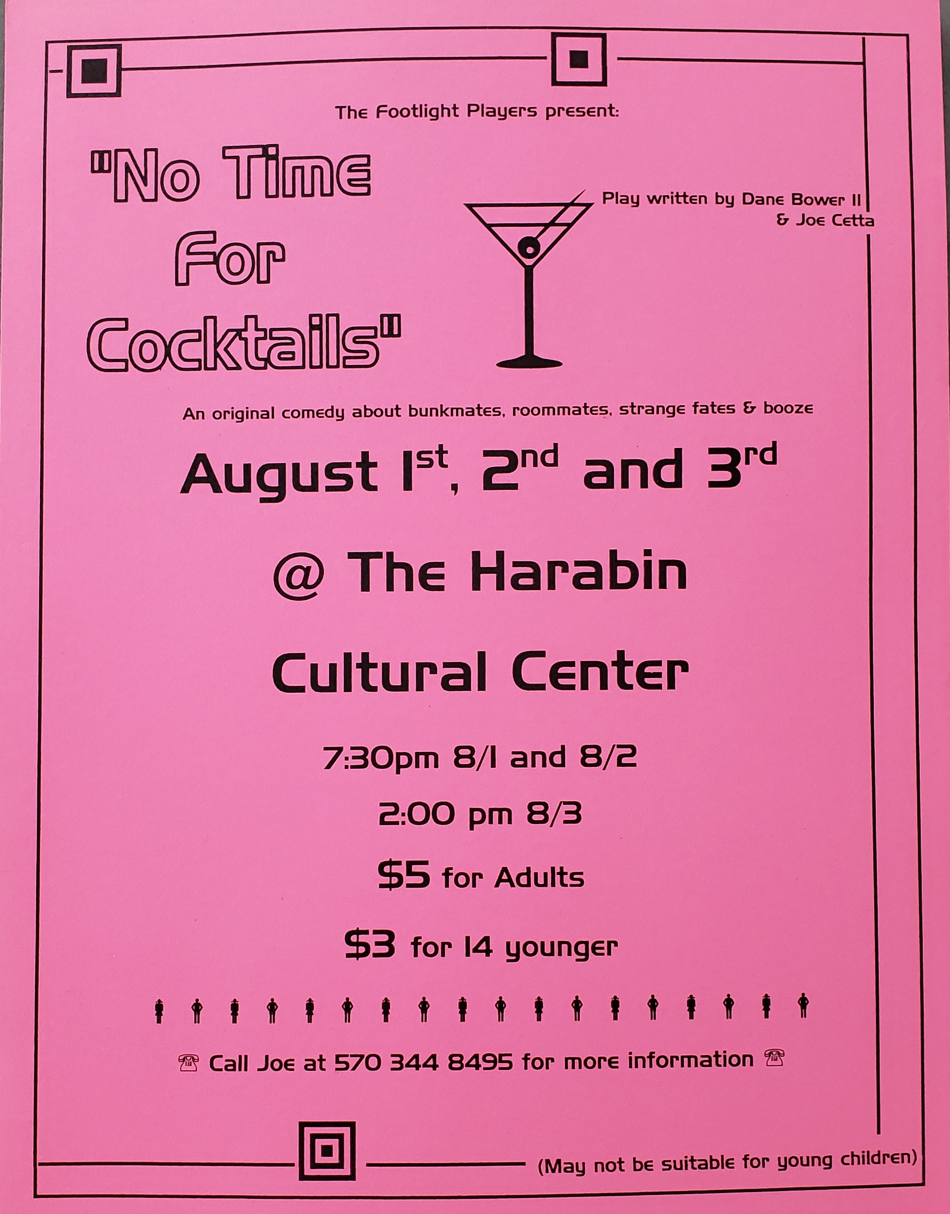 In (I want to say) 2003 I co-wrote a play produced in the bustling theater metropolis of Jessup, Pennsylvania that was basically a compilation of ten-minuters into a loosely strung together evening of yuks. Dane and I (shoutout Dane Bower!) couldn’t hit upon a title for this Frankenstein of a show, set primarily in a bar as the scenes played out behind, until I remembered Piggy’s throwaway line in Muppet Caper. She’s broken into a posh London residence, pretending it’s her own before Kermit picks her up on their date, and is confronted by the owner, played by John Cleese. He, being a polite Brit, asks if there’s anything he can do for them, instead of hurling them into the street, wherein some information is exchanged and Piggy dismisses him with “Thank you, Jeeves. No time for cocktails.” Thus, No Time For Cocktails took the Jessup theater world by storm for a lone weekend seventeen years ago, and no one is still talking about it to this day.