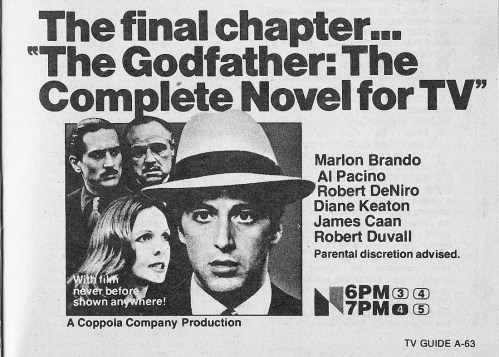 But while I never really considered it before, if I had to concoct a theory as to why I ended up so obsessed with movies and from a fairly young age, I can track it back to an anecdote from Rosco. The Godfather was released in theaters in 1972 and first aired on television two years later (on NBC, over two nights!). Home video was still many years away, and this was the biggest hit in history for a few years, so it got re-aired often, but not always in prime time, as there were only like four channels back then and this was highly coveted broadcast real estate. But with no other way to see the film – as the world was completely at the mercy of TV programmers – Rosco would set alarms and get up in the middle of the night to watch it when it aired on TV. He had a job and kids and whatnot and would still arrange his life around broadcasts of The Godfather. With that sort of dedication to moviewatching built into my DNA, I guess it goes to follow that I’d turn into the sort of person who’d dedicate multiple years to chronicling his 400 favorite movies to no certain audience.