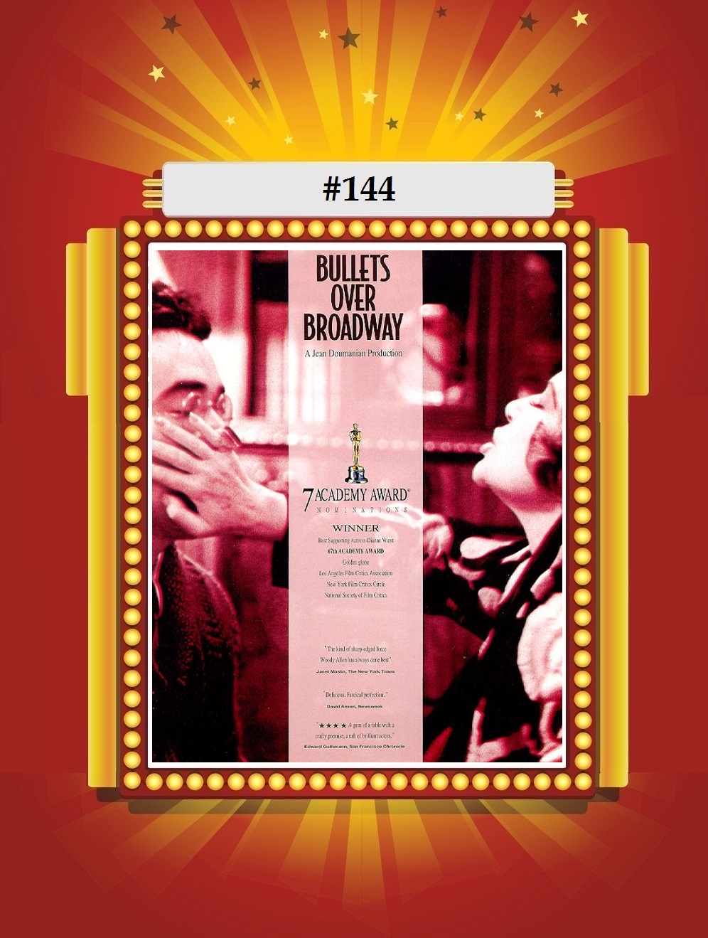 If you were to take the entire Set of 400 up to this point, feed it into a computer, and have that parse out all the elements that might make up the perfect film geared toward this guy, it may well spit out Bullets Over Broadway. It’s the seventh Woody Allen movie on the list, it’s from a year I proclaim to love more than almost any other in cinema history: 1994, it’s a movie about a play, it’s a movie about gangsters, it’s a movie about writers, it features a ton of future Sopranos actors, it was nominated for and won a slew of awards – Bullets Over Broadway kinda has everything for me.