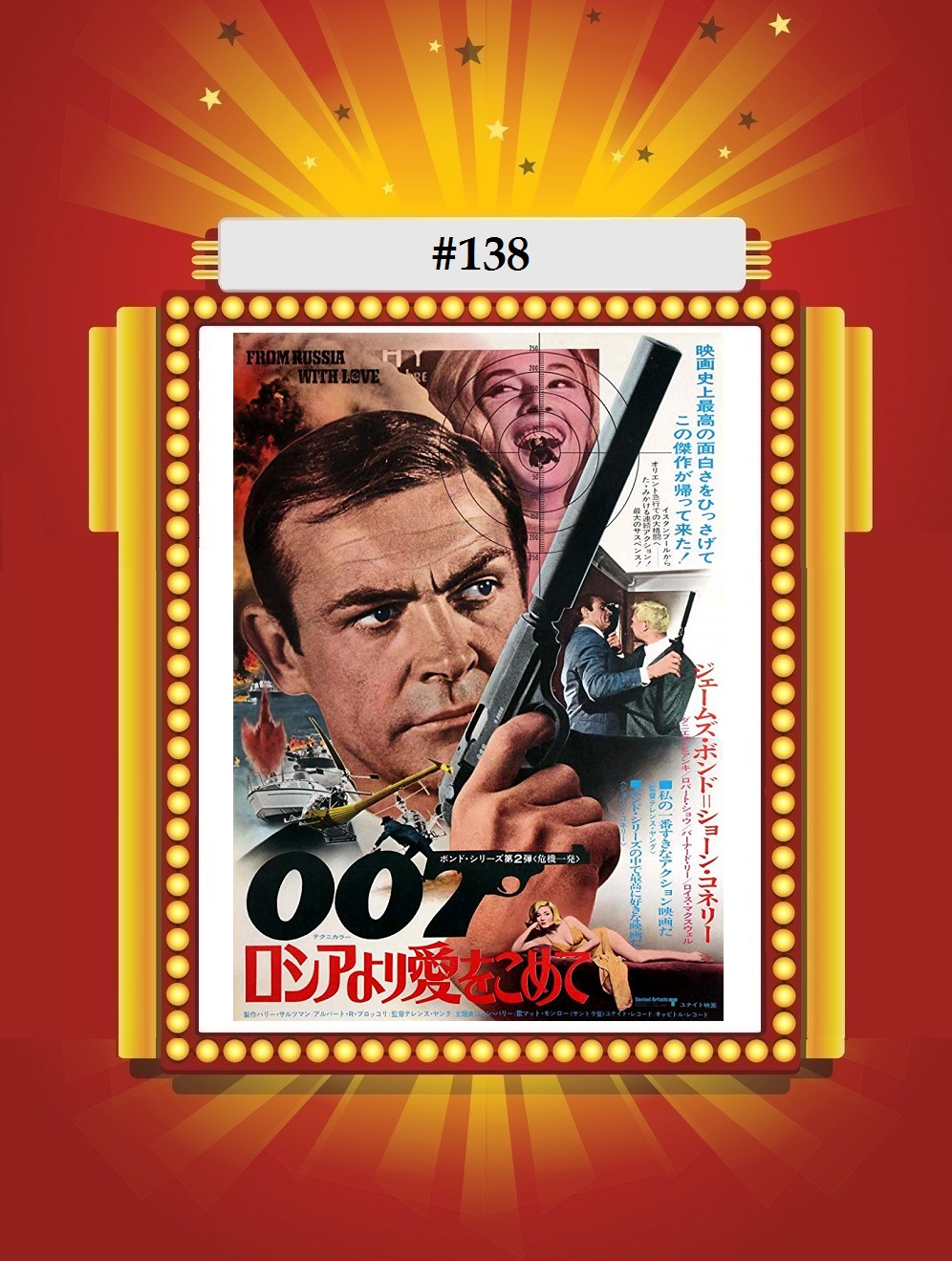Starring Sean Connery (x5), Daniela Bianchi, Robert Shaw, Lotte Lenya, Pedro Armendariz, Bernard Lee (x2), Eunice Gayson (x2), Lois Maxwell (x3), Vladek Sheybal, Desmond Llewelyn, Anthony Dawson (x2)